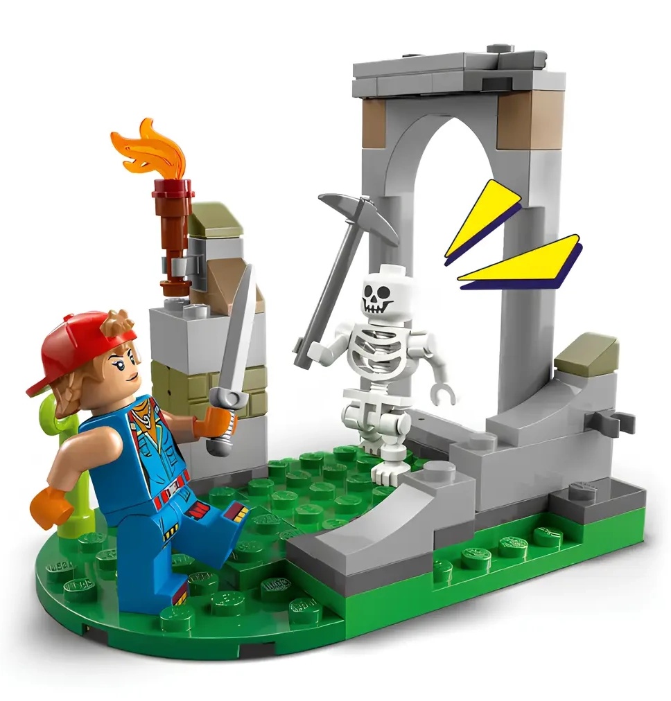 Acest set de joacă reproduce provocările inițiale cu care se confruntă jucătorii în jocul video LEGO Fortnite Odyssey, iar băieții și fetele se vor distra construind un foc de tabără, o bancă de lucru și ruine care pot fi dezasamblate și reconstruite. Setul include, de asemenea, o figurină lamă de reaprovizionare și o figurină lup cu coadă și picioare articulate. Acțiunea prinde viață cu minifigurinele Peely, Sparkplug și schelet, fiecare cu accesorii pentru arme pentru a încuraja jocul de rol imaginativ.