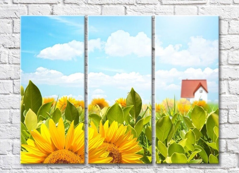 Pictură Rainbow Sunflower garden and a house on the horizon (500469)