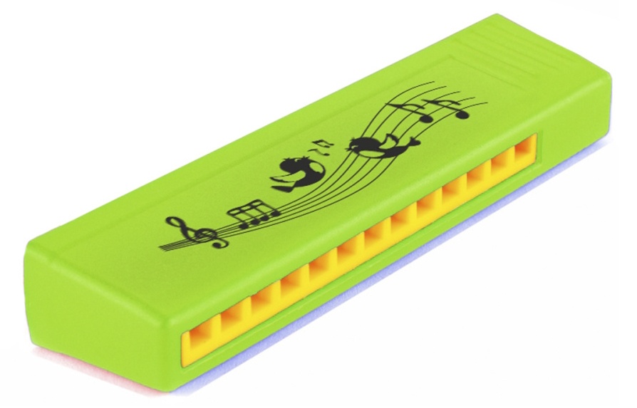 O armonică mare și verde nu va lăsa indiferent un copil interesat de muzică. Folosind acordeonul, copilul nu numai că își va îmbunătăți abilitățile muzicale, dar își va dezvolta și plămânii.