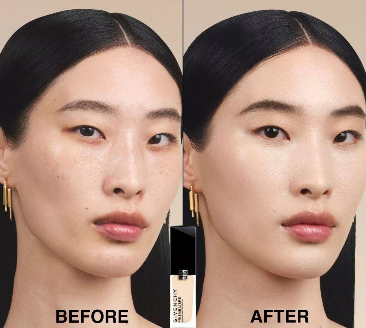 Fondul de ten-serum Givenchy Glow Serum Foundation, parte din colecția iconică Prisme Libre, creează o bază luminoasă cu efect de soft focus, care rezistă până la 24 de ore. Acest fluid lejer este potrivit pentru toate tipurile de piele și oferă o acoperire medie, ce poate fi intensificată după preferință.