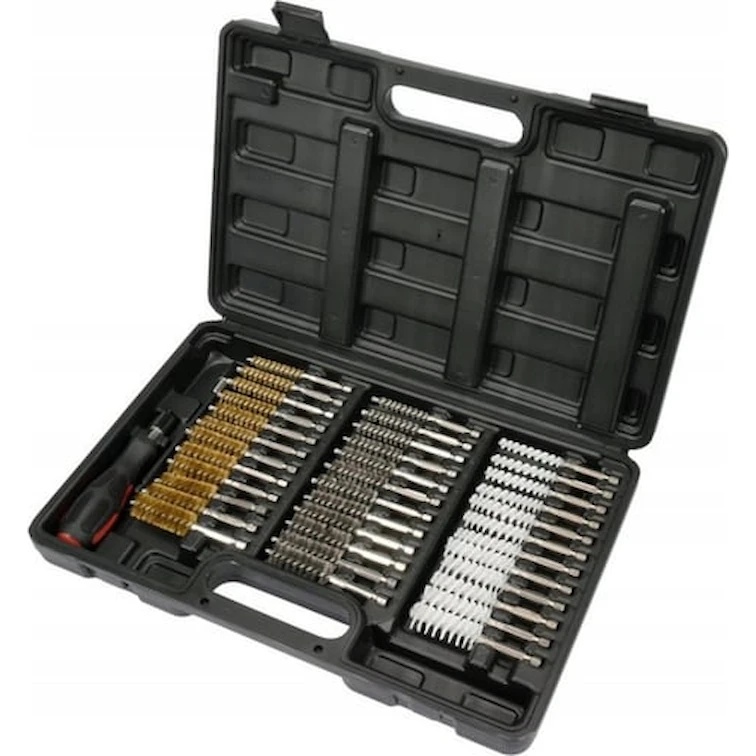 Elemente din materiale de calitate; 36 de perii din oțel inoxidabil, alamă și nailon; Posibilitatea de a folosi perii cu mâner atașat sau cu un instrument electric.