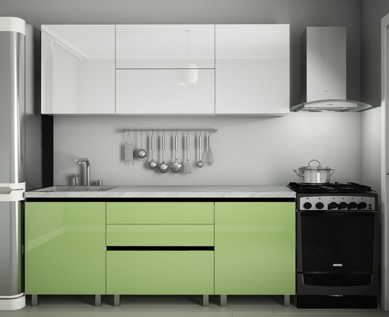 Bucătărie Bafimob Gola-1 Glass (High Gloss) 2.0m White/Green