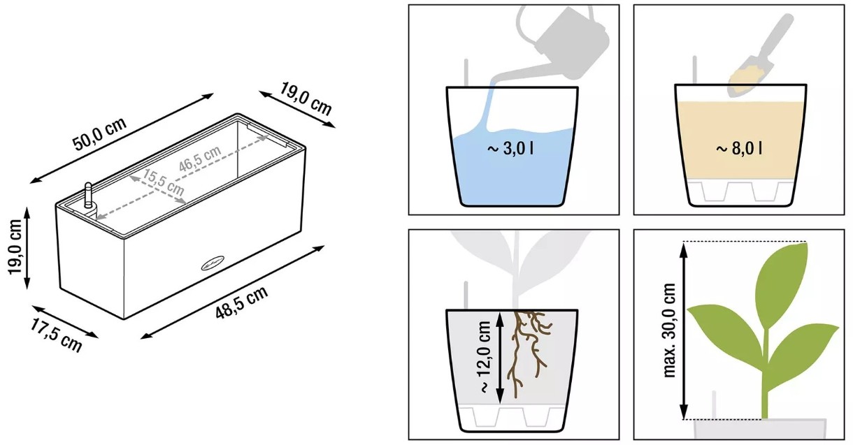 Dimensiunea interioară a giveciului15.5х46.5 cm