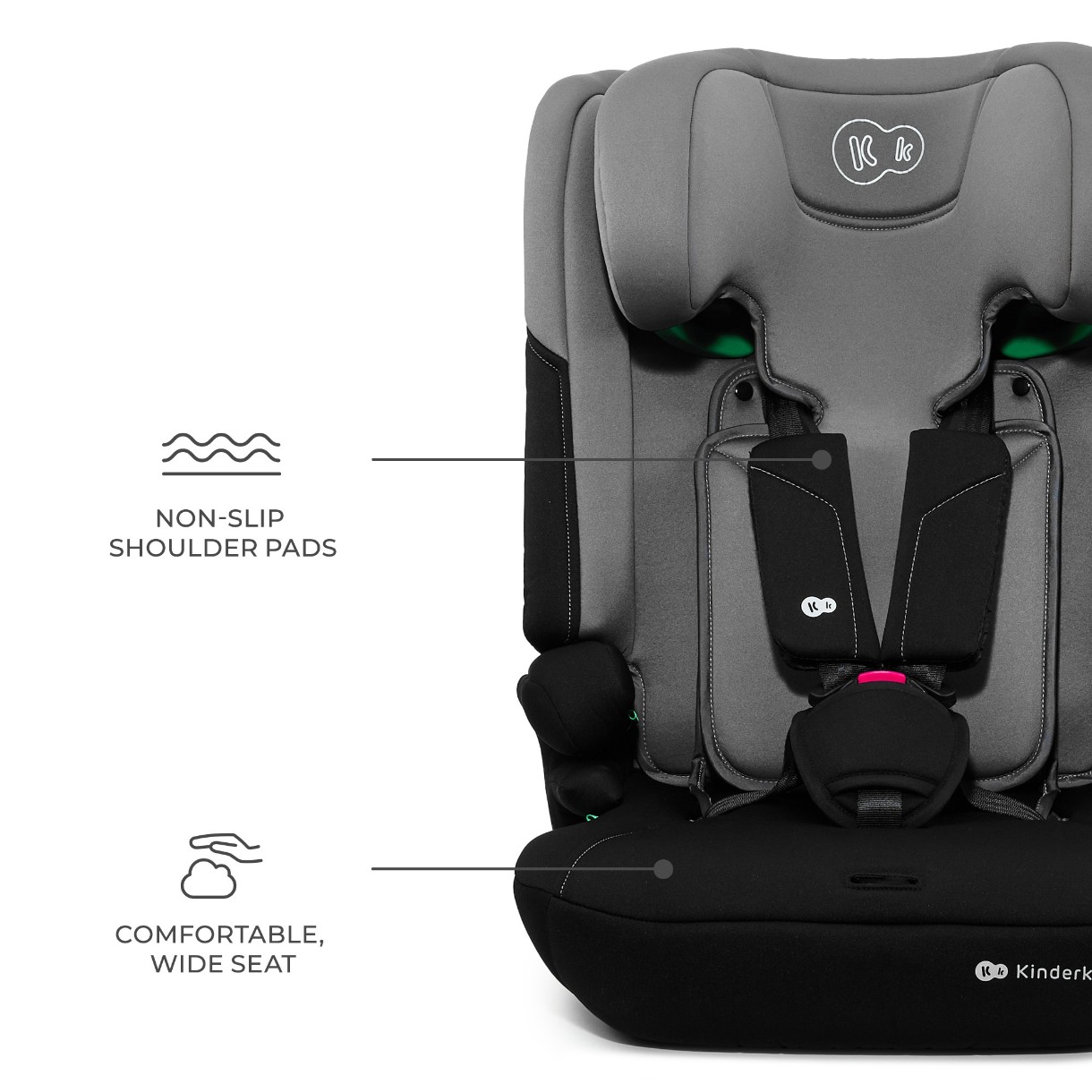 Kinderkraft i-Comfy i-Size este un scaun auto modern, creat pentru a oferi copilului tău siguranță și confort maxim. Este conceput pentru copii cu o înălțime între 76 și 150 cm, crescând odată cu ei și potrivindu-se de la aproximativ 15 luni până la 12 ani. Respectând standardul riguros R129, inclusiv testele de impact lateral, oferă cel mai înalt nivel de protecție.