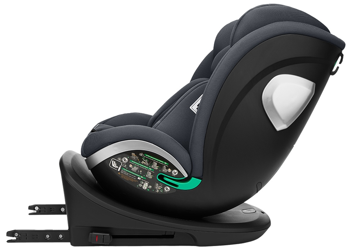i-SIZE (40-150 cm). Potrivit pentru instalarea în direcția din spate de la 40 la 105 cm. Potrivit pentru instalarea față în față de la 76 la 150 cm. 5 poziții de înclinare pot fi utilizate atât pentru instalarea pe spate, cât și față în față. Scaunul se pivotează la 360 de grade. Sistem ISOFIX pentru siguranță sporită și instalare ușoară a scaunului auto. Sistem SPS - sistem de protecție laterală pentru un plus de siguranță. Curea de sus pentru un plus de siguranță. Tetieră reglabilă în 9 poziții. Sistem de fixare în 5 puncte cu cotiere și huse de protecție pentru catarama inferioară. Ajustor de siguranță pentru reglarea centurii cu o singură mână. Scaun moale și confortabil. Testat în conformitate cu Regulamentul ONU nr. R129/03 TÜV NORD.