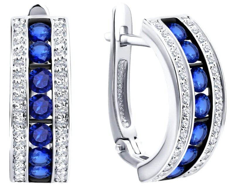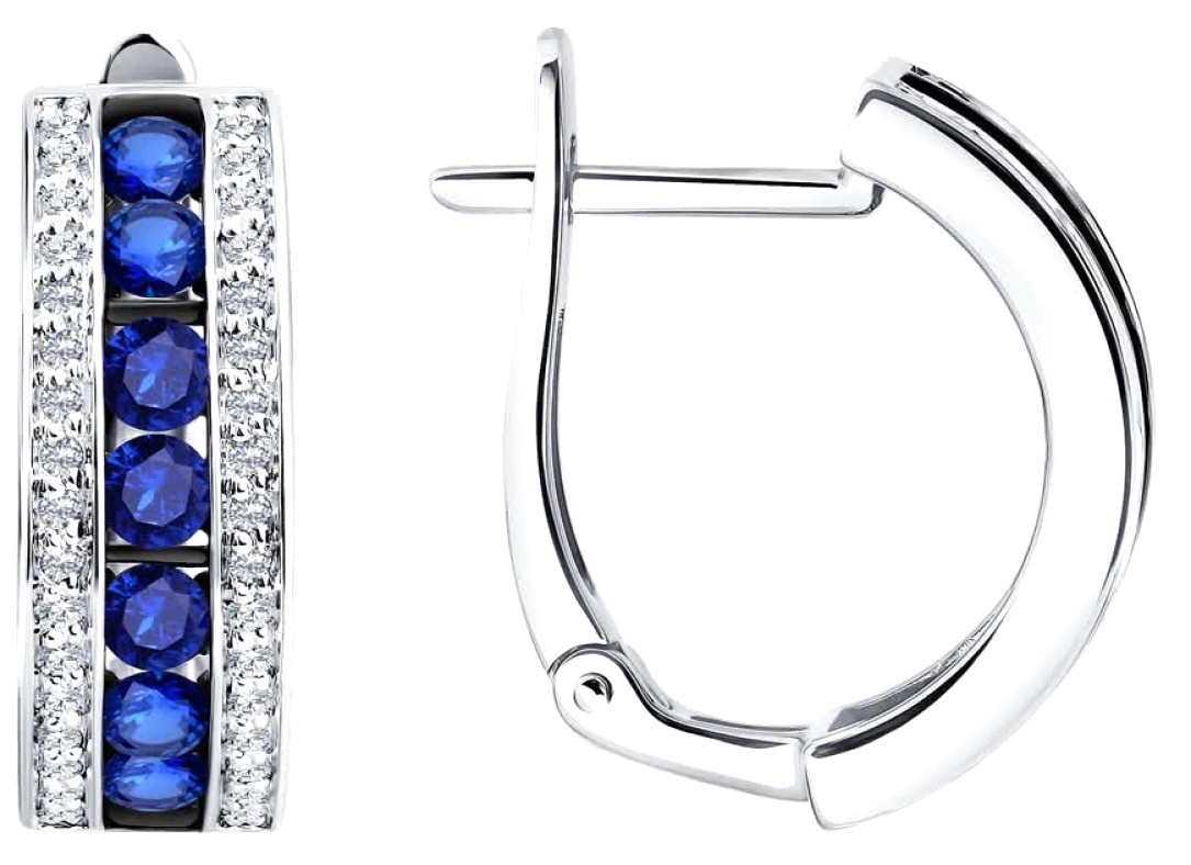 Cercei din aur alb cu diamante și safire Sokolov 52-220-01064-1 4,12g