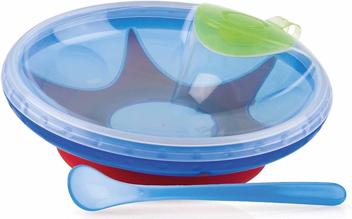 Farfurie cu capac, lingură si ventuza pentru încălzire Nuby. Acum, procesul de hrănire va fi mult mai ușor! Pur și simplu turnati apă caldă în rezervor pentru a păstra alimentație calde în timpul hrănirii.