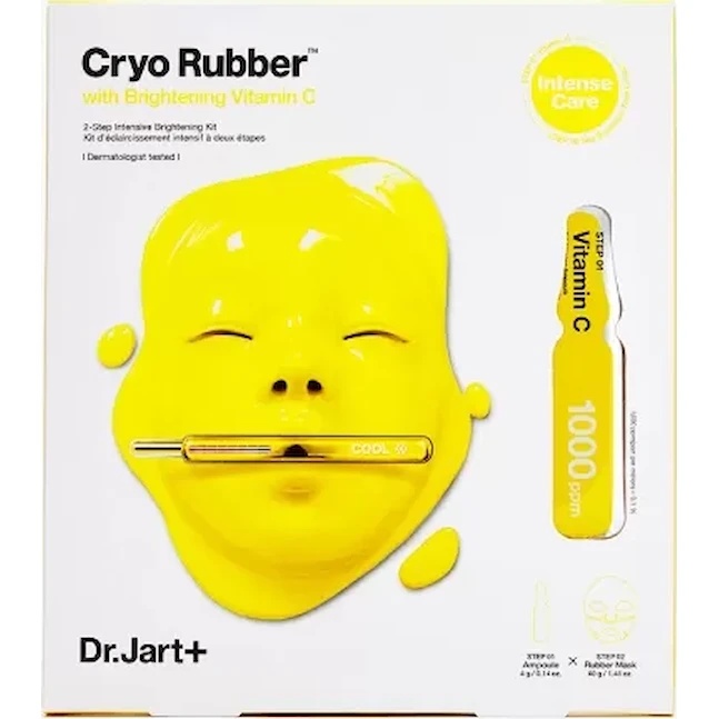 Dr.Jart+ Cryo Rubber Brightening Mask este o mască facială în două etape, inspirată din tratamentele crioterapice, concepută pentru a reda luminozitatea pielii și a uniformiza tonul tenului.