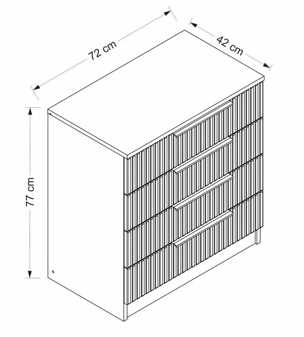 Comodul este fabricat din panouri de particule de lemn acoperite cu melamină, asigurând durabilitate excepțională, rezistență la zgârieturi, pete și uzura zilnică. Aceasta va păstra starea impecabilă pentru mulți ani.