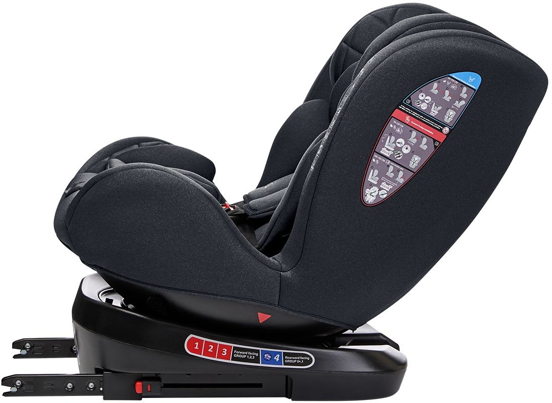 - Funcția de rotație la 360° adaugă un plus de confort, permițând rotirea ușoară a scaunului auto către ușă pentru așezarea și fixarea copilului fără efort.