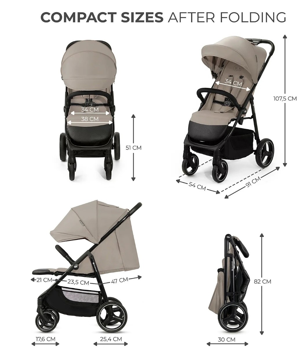 Acesta este TRIG 3 — o versiune îmbunătățită a modelelor anterioare, care te va încânta prin șezutul mai lung, suportul pentru picioare extins și reglarea mai ușoară a spătarului. Scaunul căruciorului este moale și confortabil, iar combinația dintre amortizoare, roțile rezistente la înțepături, greutatea redusă și manevrabilitatea excelentă îl transformă într-un cărucior pregătit pentru orice provocare. Copertina este mai lungă, impermeabilă și dotată cu un panou de ventilație pentru zilele călduroase. Cadrul solid din oțel suportă o greutate maximă de 25 kg, iar coșul de depozitare îmbunătățit poate găzdui nu doar toate accesoriile tale, ci și pungile de cumpărături.