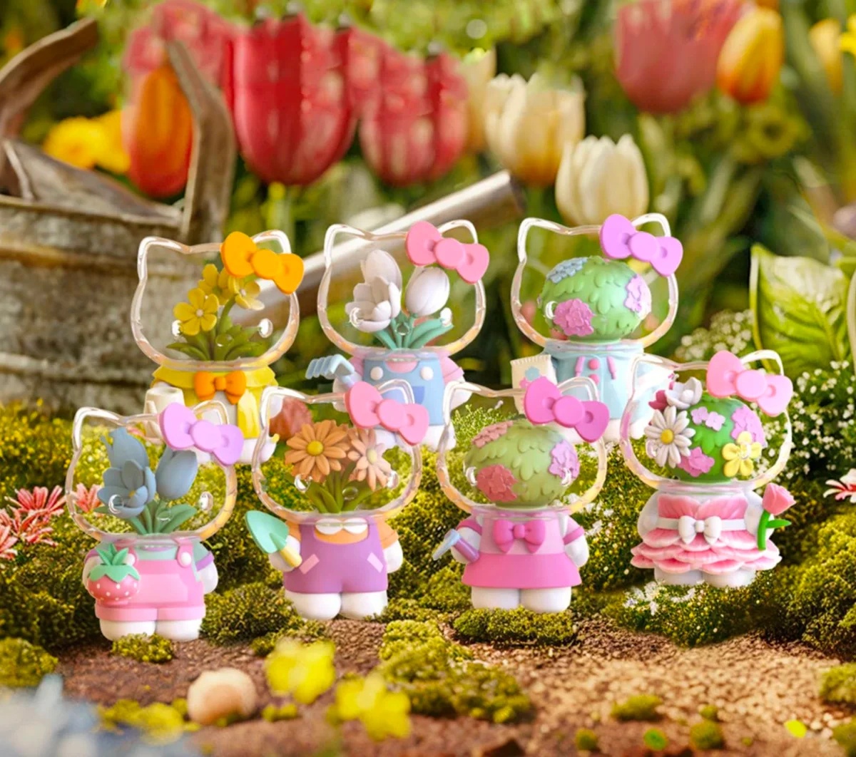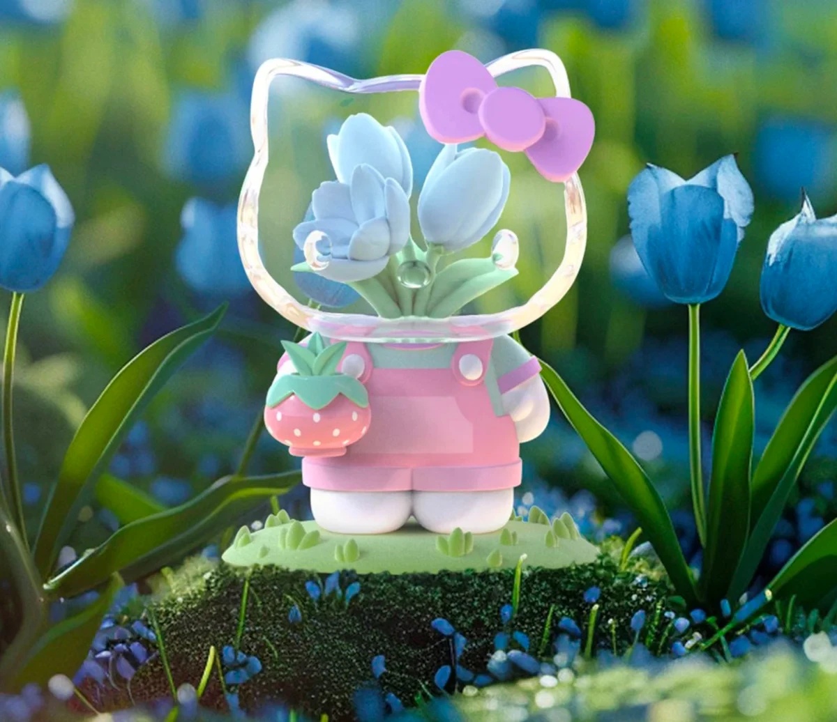 Colecție oficială Mighty Jaxx x Sanrio, figurine Hello Kitty cu design special și cap transparent umplut cu flori detaliate
