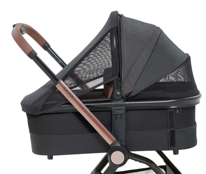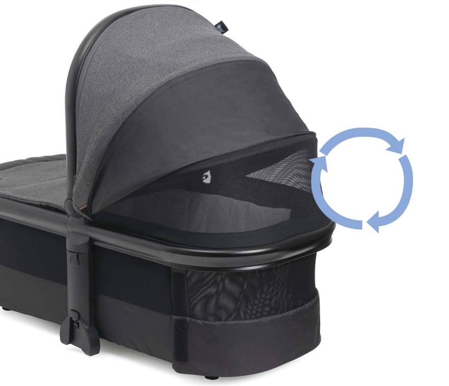 Stabil și extra ușor, cântărește doar 3 kg. Mâner încorporat pentru transport ușor. Landou super respirabil, datorită unui sistem dublu de circulație a aerului: secțiuni din plasă pe capotă și la cap pentru ventilație și contact vizual.