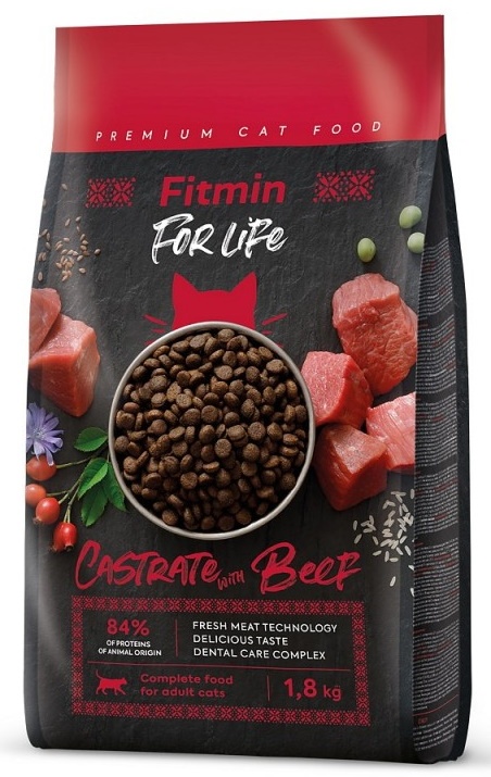 Hrană uscată pentru pisici Fitmin For Life Castrate Beef 8kg