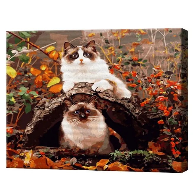 Tablou pe numere Art Gallery Premium Motanii la o plimbare de toamnă 40x50cm (GX34045)