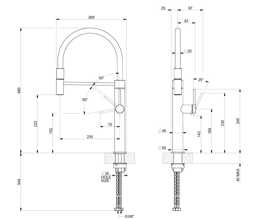 Baterie bucătărie Gessi 316 Kitchen Flessa 60010-727