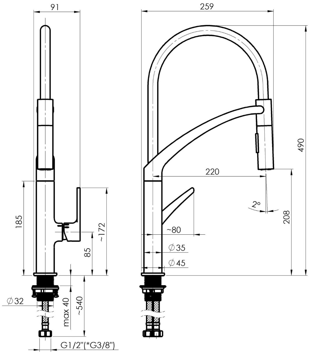 Înălțime pipă208 mm