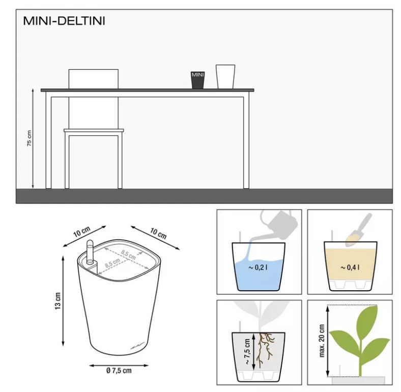 Ghiveci Lechuza Mini Deltini Premium Shiny Taupe