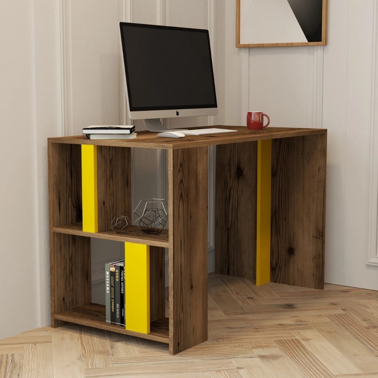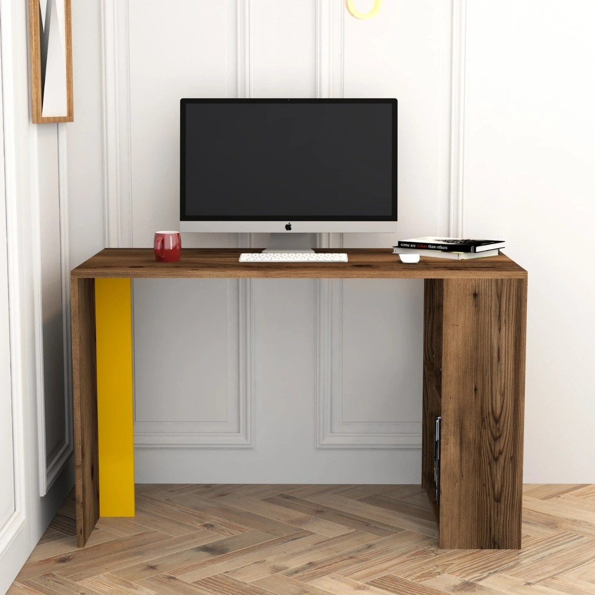 Masa de birou Trendy Lima Walnut/Yellow 120x75x60cm GTR001007
