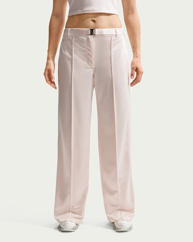Pantaloni spotivi de dame Nike Sportswear Loose Mid-Rise Belted Pintuck Chalk, s.XL