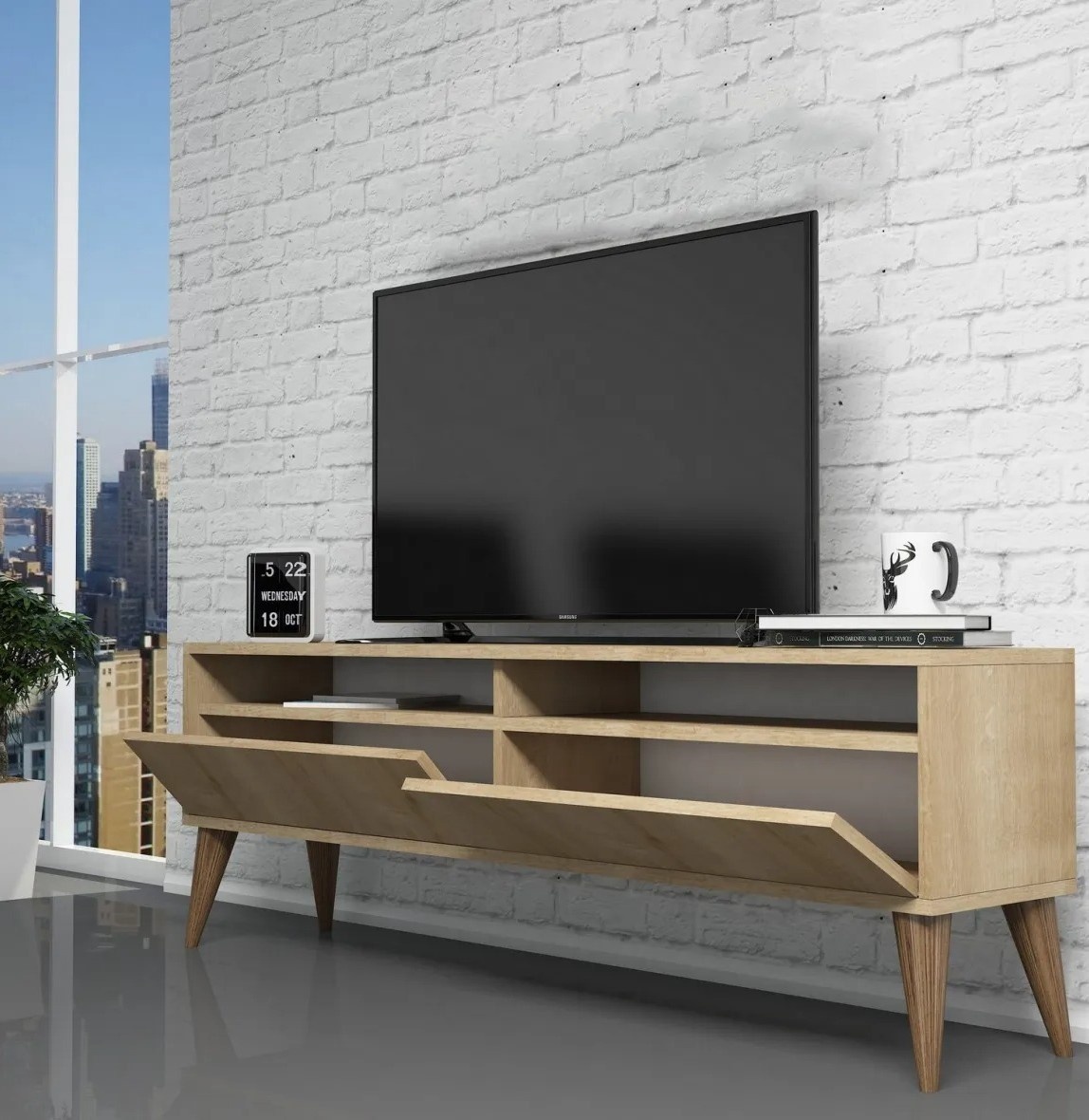 Cu design elegant și modern, această unitate TV este o adevărată capodoperă care va îmbunătăți fără efort estetica oricărei încăperi.