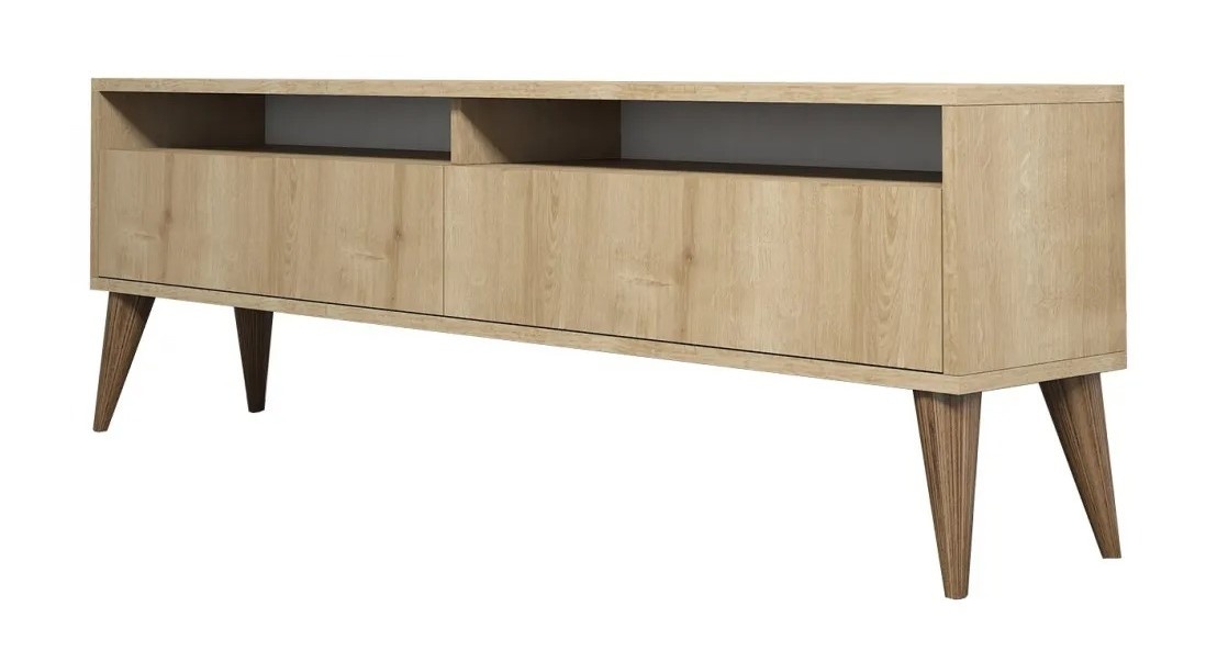 Proiectat pentru confort, acest corp de televizor oferă spațiu generos pentru a menține zona de locuit organizată. Lățimea de 150 cm oferă suficient spațiu pentru televizor, iar înălțimea de 30 cm și adâncimea de 50 cm permit organizarea ordonată a accesoriilor media, cărților și obiectelor decorative.