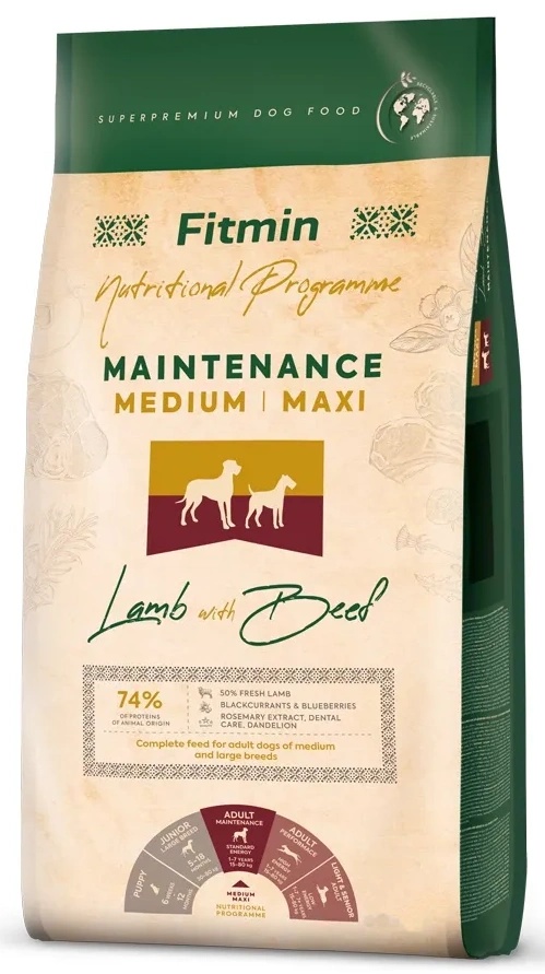 Hrană uscată pentru câini Fitmin Maintenance Medium/Maxi Lamb & Beef 2.5kg
