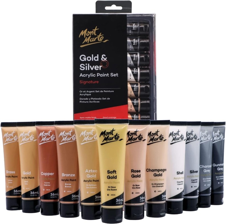 Vopsele de artă Mont Marte Gold & Silver PMHS0096 12pcs x 36ml