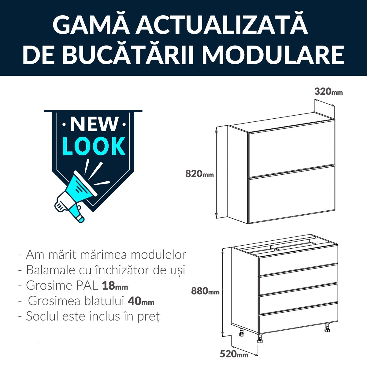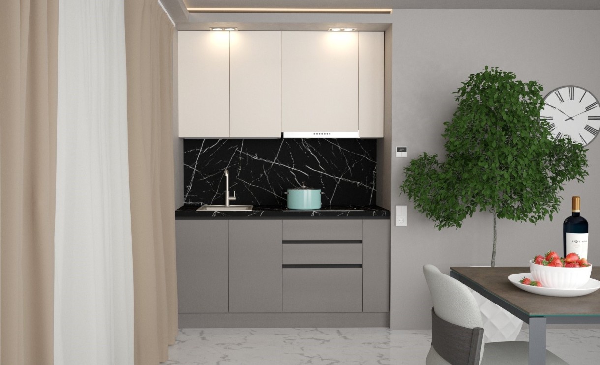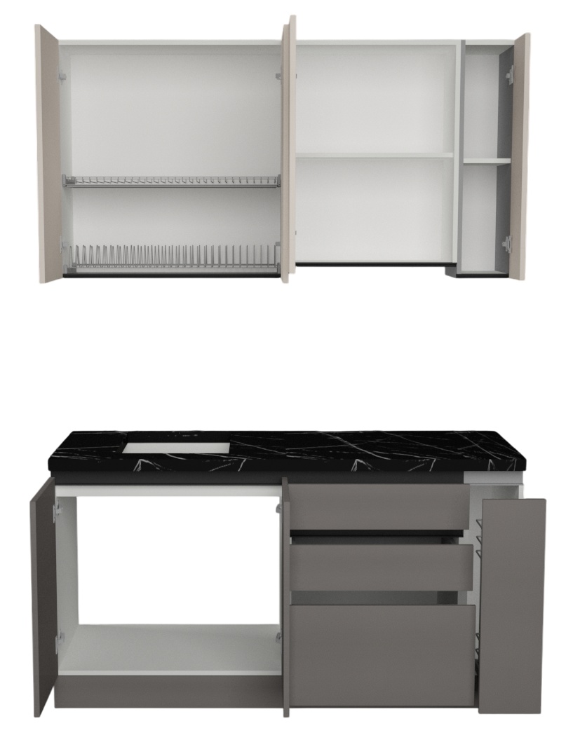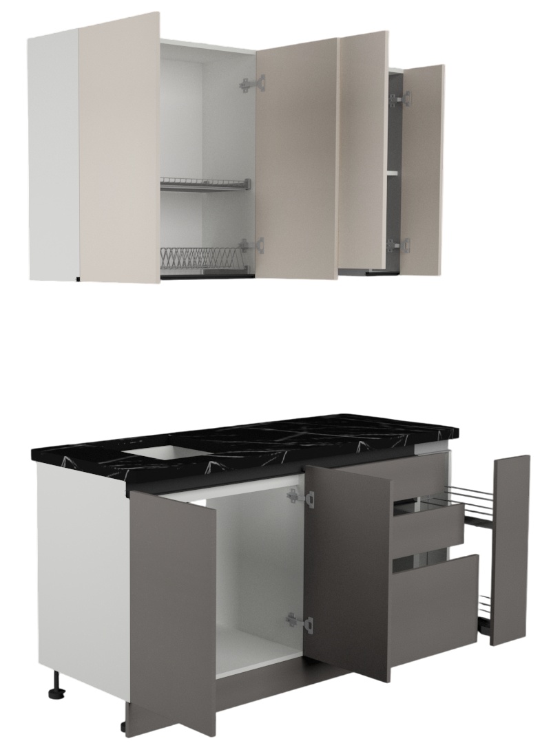 Bucătărie MDF Lux Gola 1600 SM Cream/SM Stone Grey