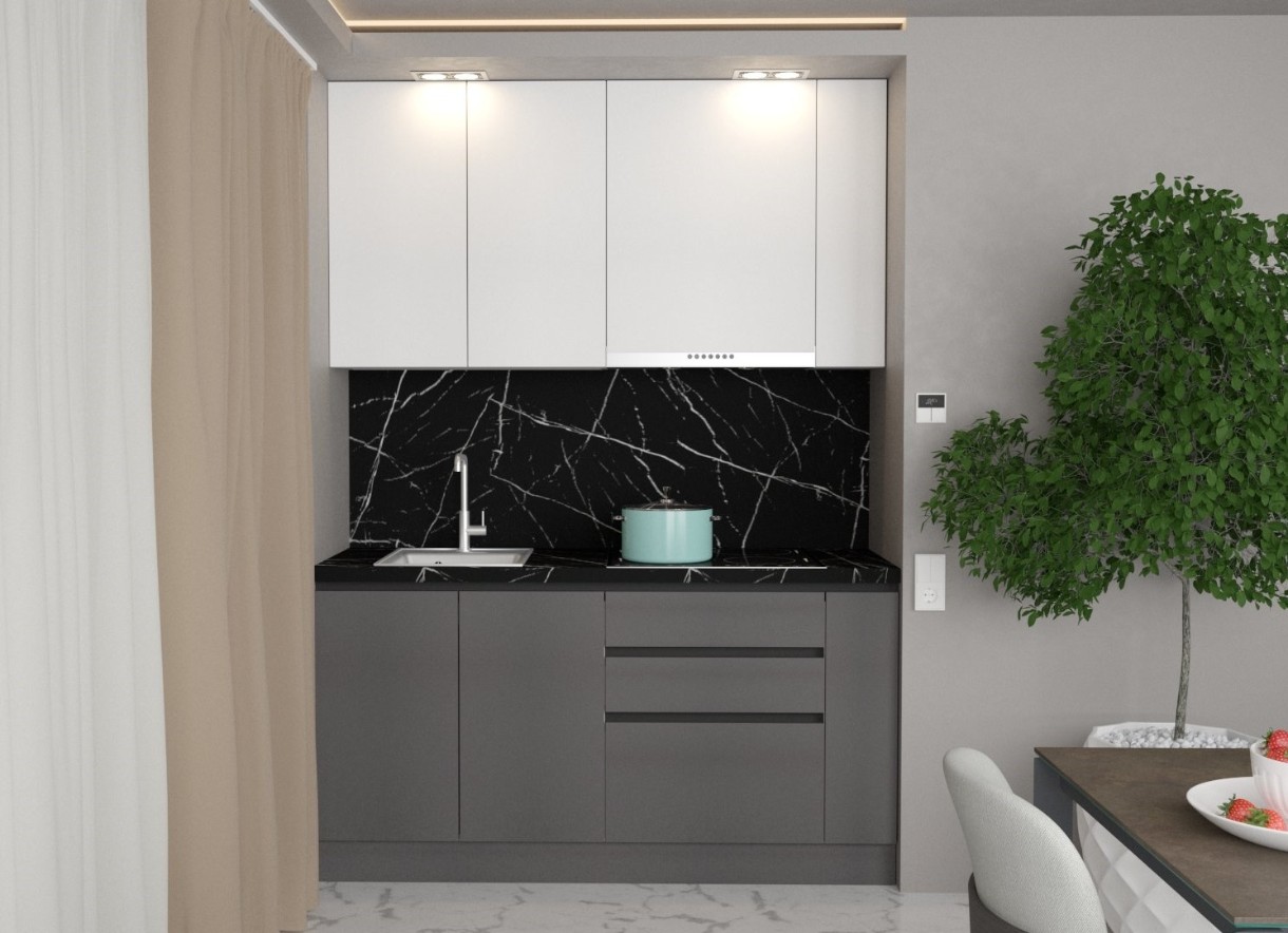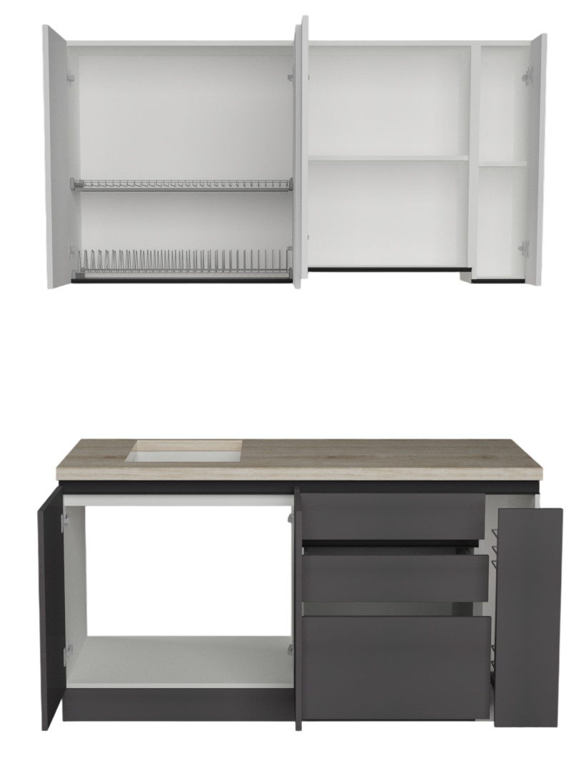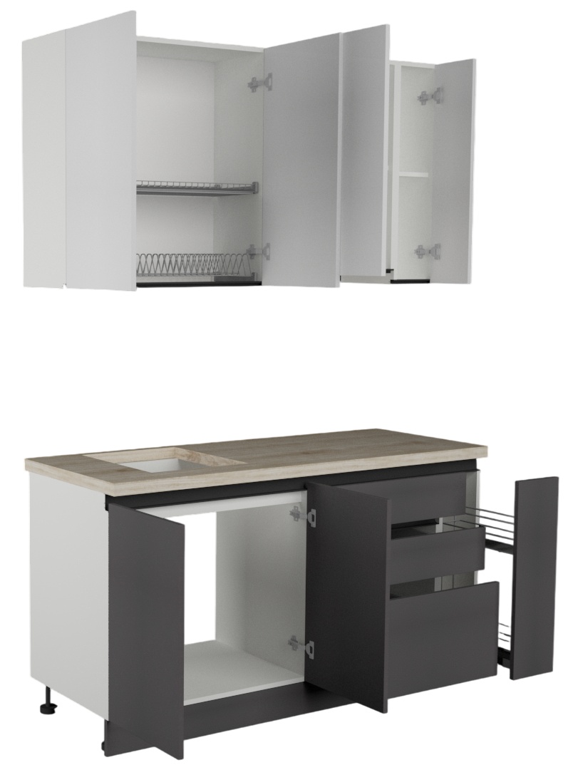 Bucătărie MDF Lux Gola 1600 SM White/SM Storm Grey