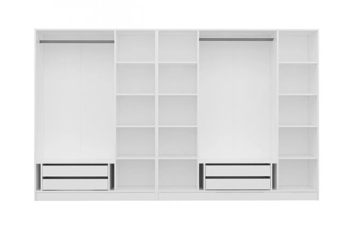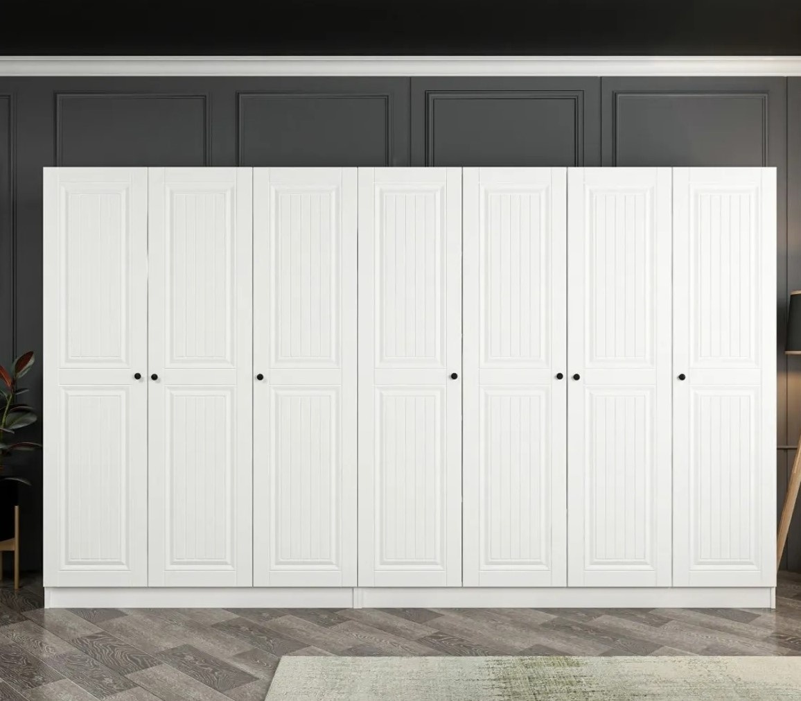 Cu dimensiunile sale de 315 cm lățime, 190 cm înălțime și 52 cm adâncime, dulapul oferă spațiu amplu pentru haine, încălțăminte și accesorii. Numeroasele rafturi permit o organizare eficientă, ajutându-te să păstrezi totul în ordine.