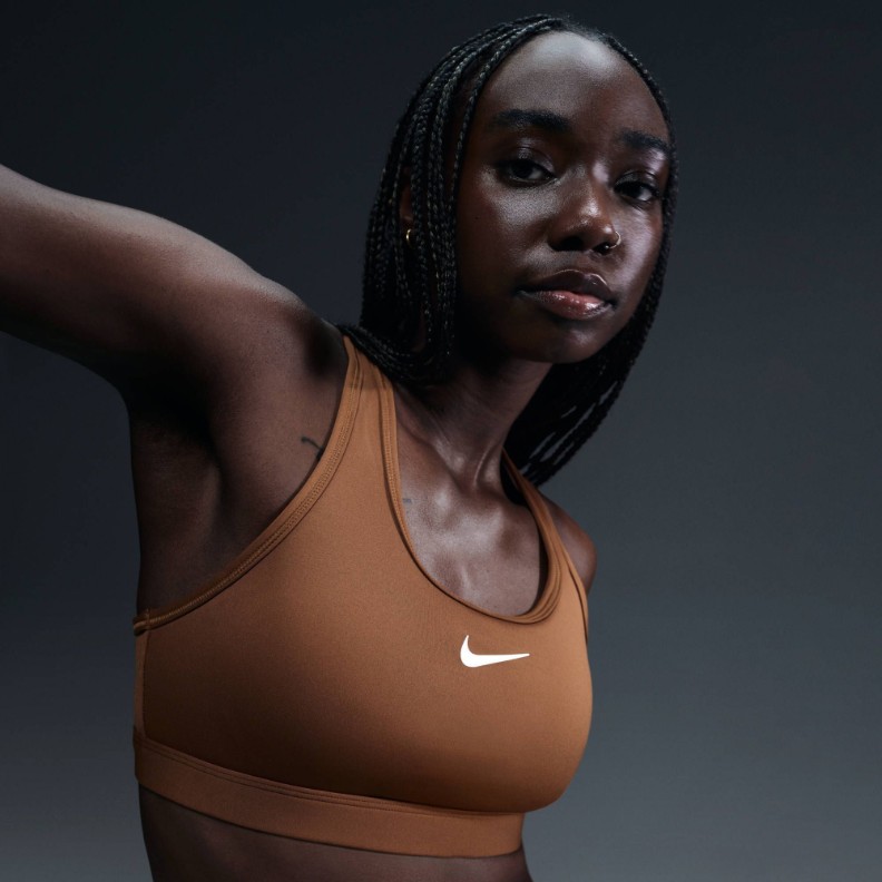 Bustieră Nike W Nk Swsh Med Spt Bra Light British Tan/White, s.XS