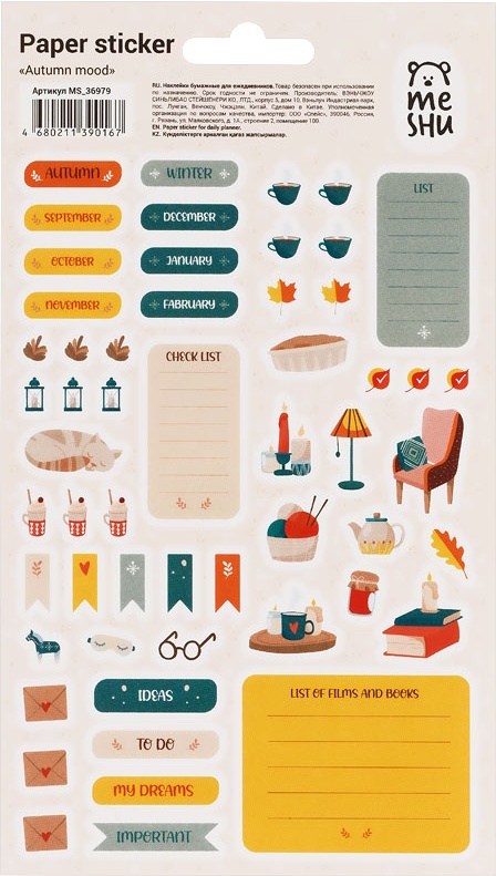 Autocolante pentru jurnal Meshu Autumn Mood 12*21cm 59pcs (MS_36979)