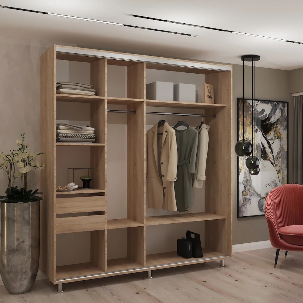 Dulap cu uşi glisante My-Style Chipboard + Mirror 200x220x60 Sonoma Oak (C20H2M03U02)