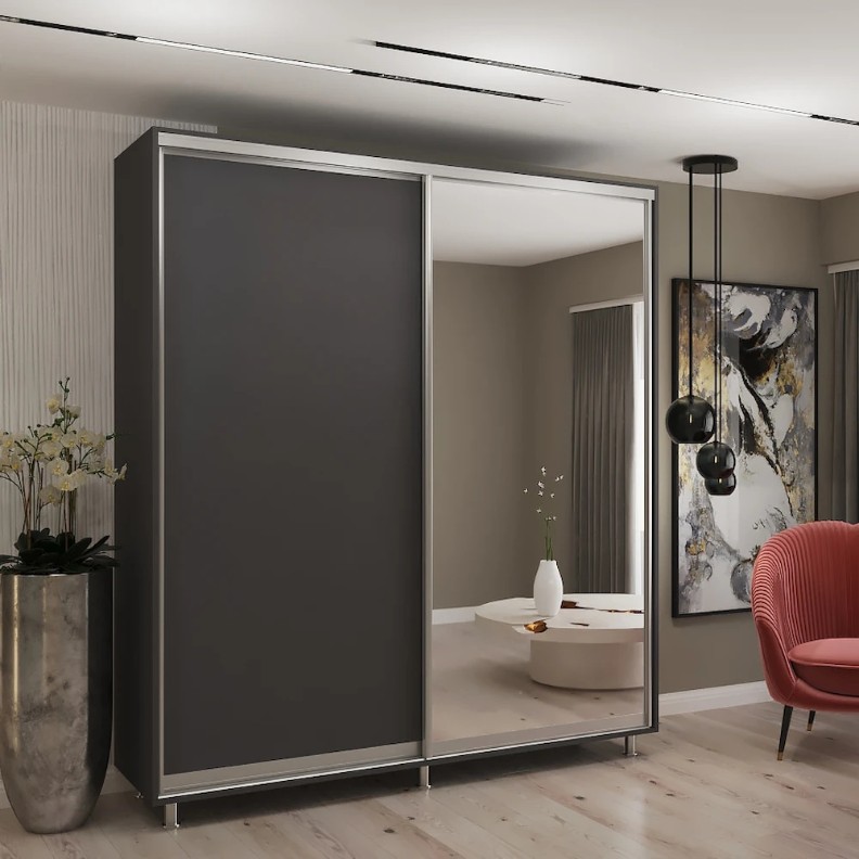 Dulap cu uşi glisante My-Style Chipboard + Mirror 220x240x60 Anthracite (C22H4M02U02)