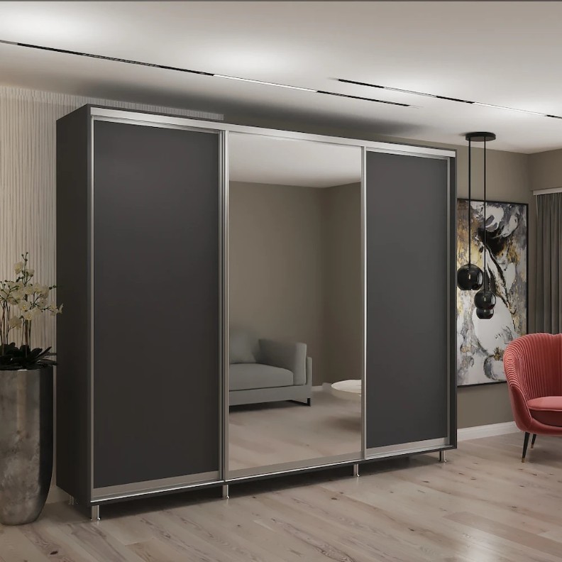 Dulap cu uşi glisante My-Style Chipboard + Mirror 270x210x60 Anthracite (C27H1M02U02)