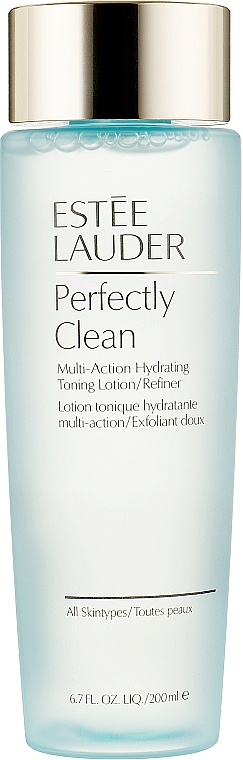 Lotiunea de tonifiere multi-acțiune Estee Lauder Perfectly Clean / Refiner poate fi utilizată atât ca demachiant, cât și ca demachiant. Tonerul elimină în mod eficient impuritățile și particulele moarte și, de asemenea, regenerează și reîmprospătează pielea. Potrivit pentru toate tipurile de piele, nu provoacă iritații și menține un echilibru optim de umiditate în celule. Textura delicată îndepărtează ușor excesul de ulei, celulele moarte și machiajul, lăsând în urmă un sentiment inegalabil de curățenie și sănătate. După utilizarea produsului, nu este nevoie să vă spălați cu apă.