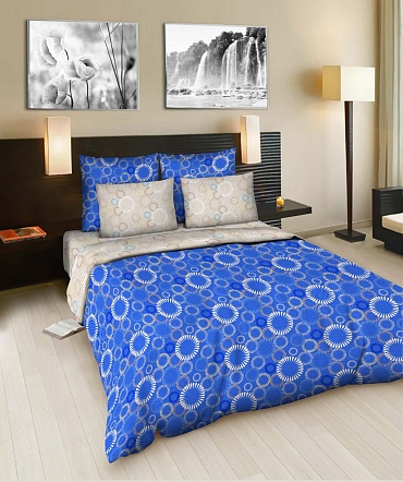 Lenjerie de pat Cottony Cotton Muza Cercuri Bej/Albastre 2E (52203/52204)