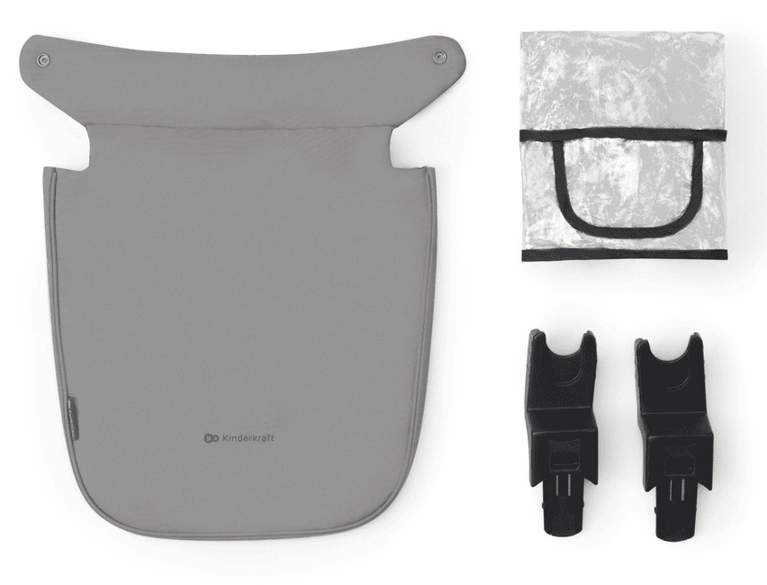 Nu este nevoie să cumperi accesorii suplimentare — toate sunt incluse! Setul conține: husă pentru picioare, folie de ploaie, adaptoare universale* și scaunul auto MINK PRO i-Size (40–75 cm).