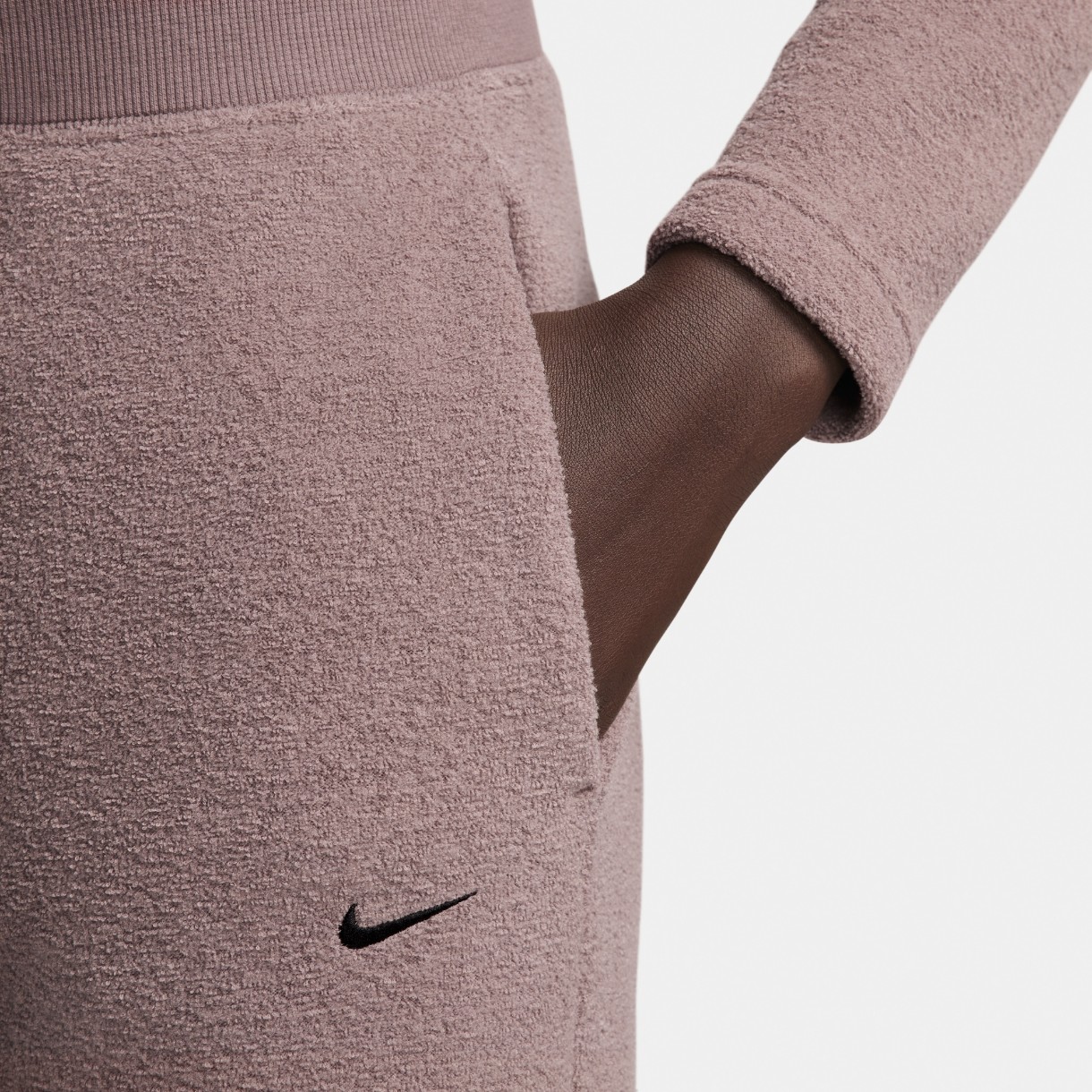 Pantaloni spotivi de dame Nike W Nsw Phnx Plsh Hr Pant Wide Smokey Mauve/Black, s.S