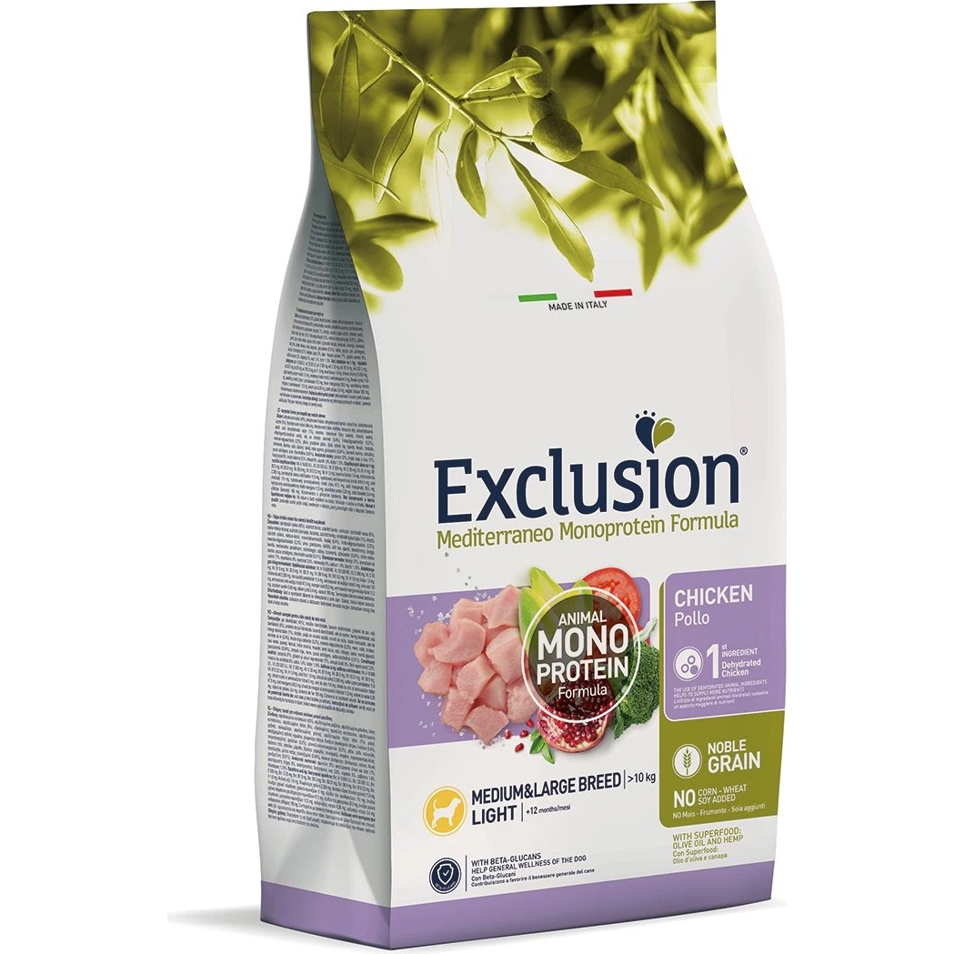 Hrană uscată pentru câini Exclusion Noble Grain M&L Breed Light Chicken 12kg