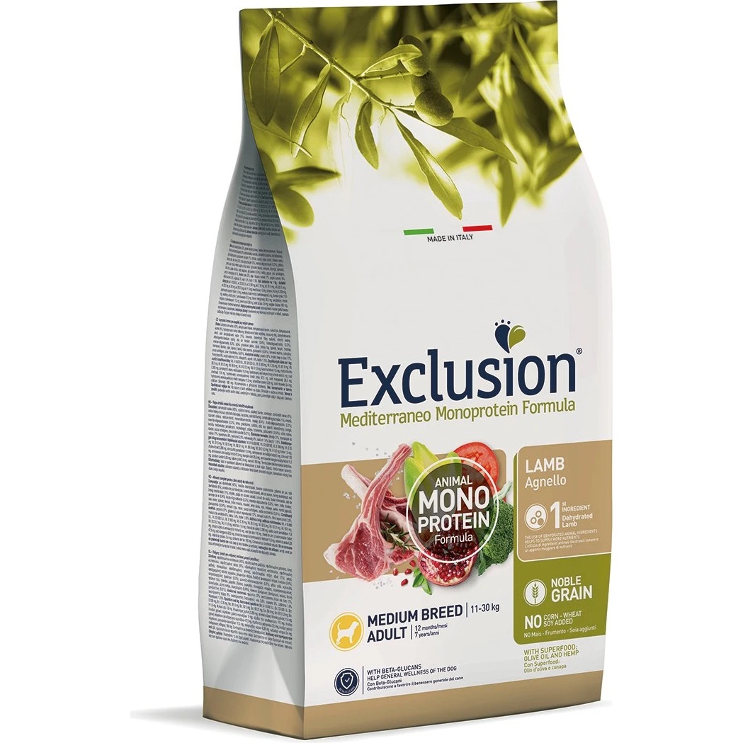 Hrană uscată pentru câini Exclusion Noble Grain Medium Breed Adult Lamb 12kg