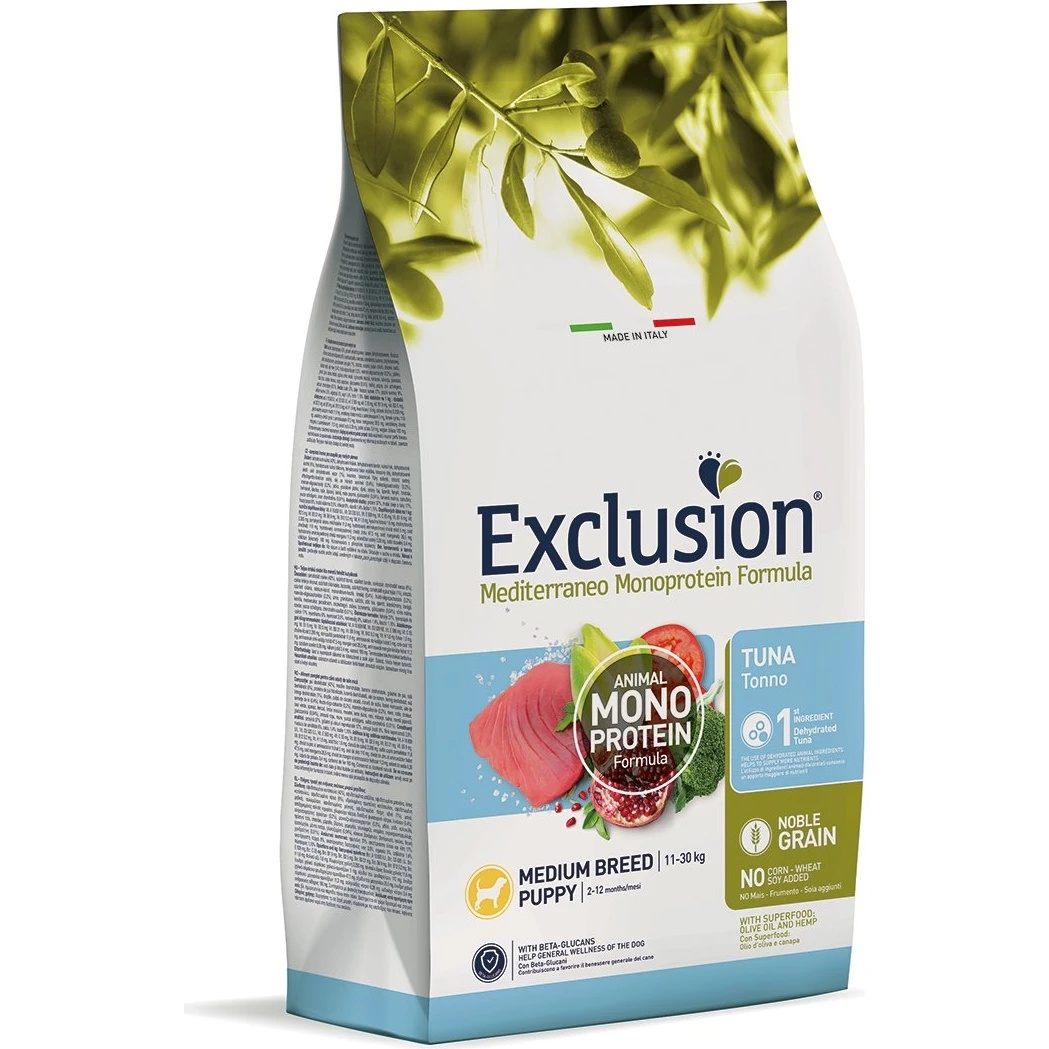 Hrană uscată pentru câini Exclusion Noble Grain Medium Breed Puppy Tuna 12kg