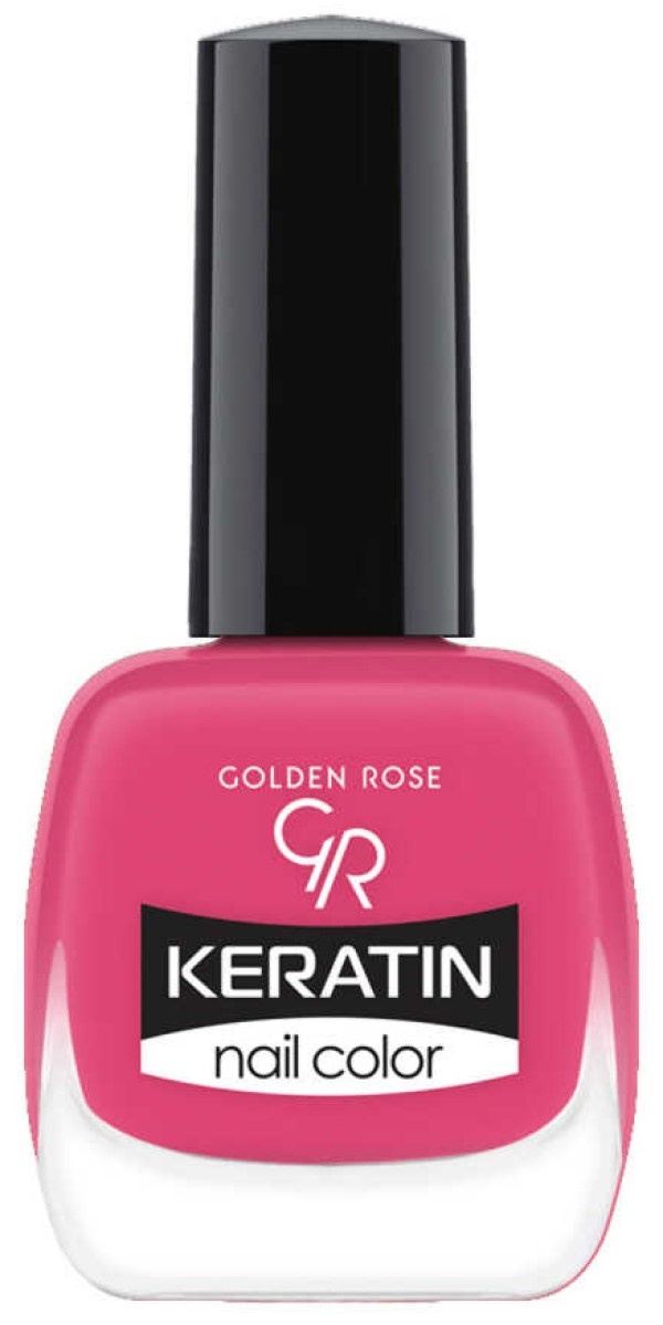 Lacul de unghii Keratin Nail Color de la Golden Rose este o formulă rezistentă, intens pigmentată, îmbogățită cu keratină, care asigură o acoperire perfectă și un luciu elegant al manichiurii.
