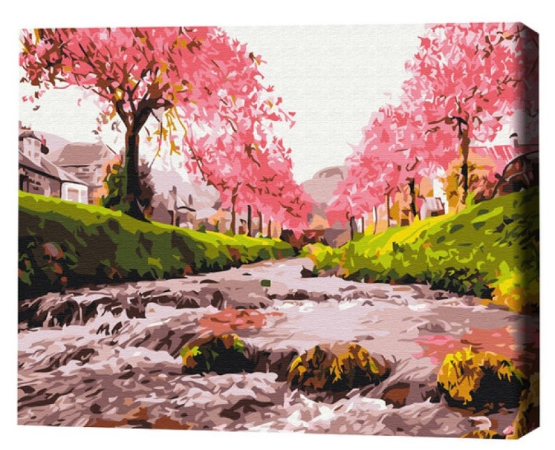 Tablou pe numere Brushme Râul în sakura (RBS25577FC)