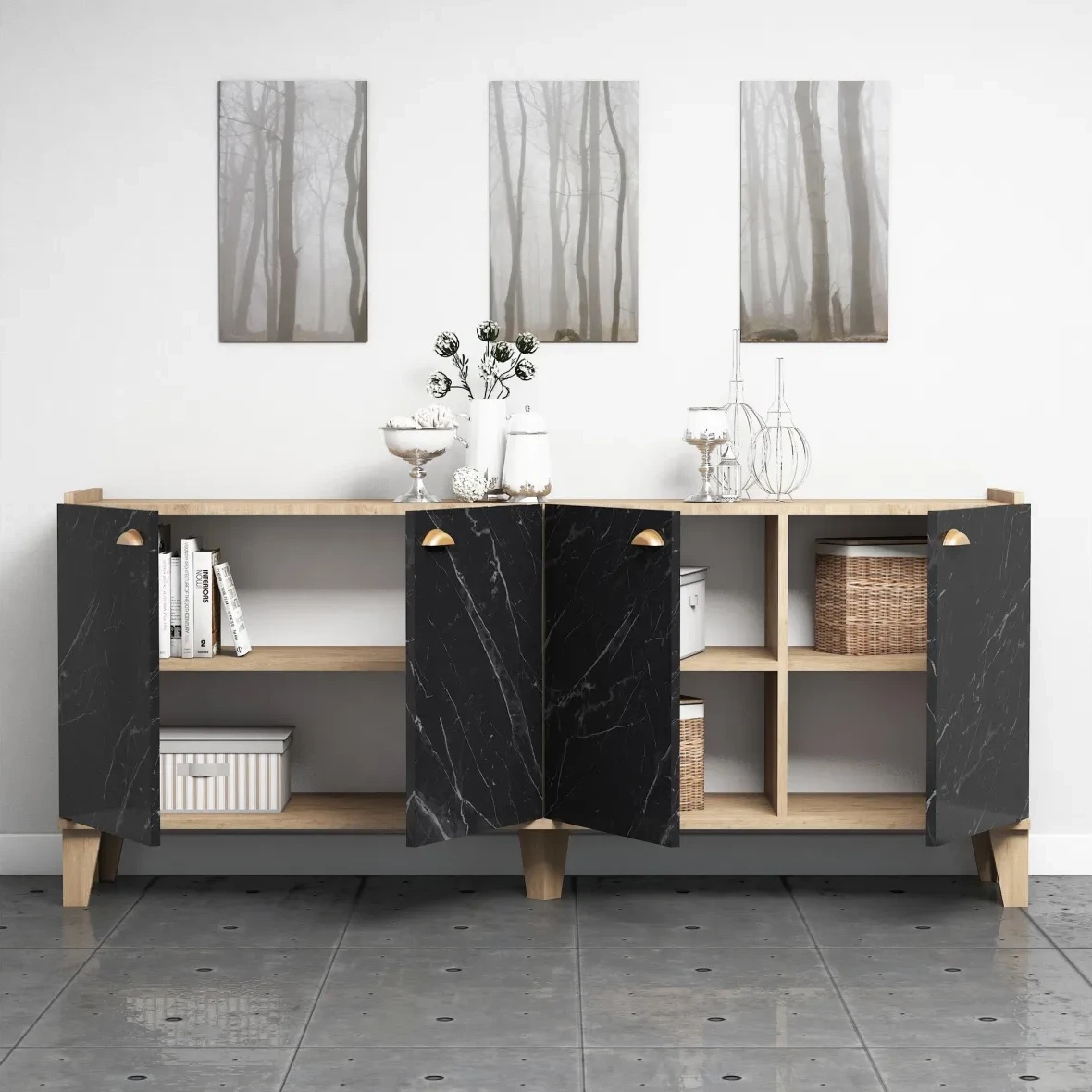 Dulăpior Trendy Sumer H3030 Oak/Black Marble 180x77.8x41cm GTR001129