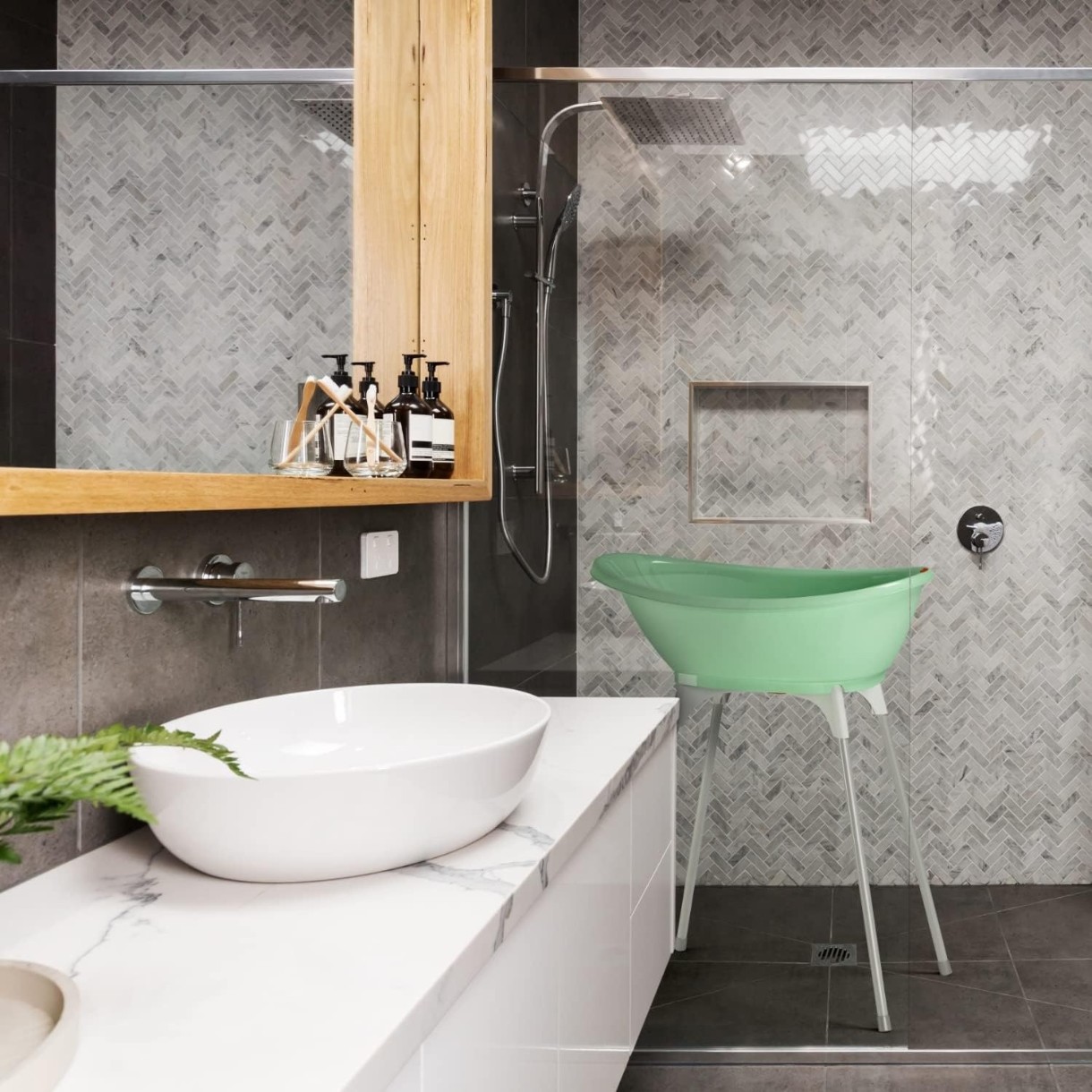 Termometru încorporat și afișaj pentru nivelul maxim al apei. Baia este dotată cu un dop de scurgere rapidă cu cheie de siguranță.