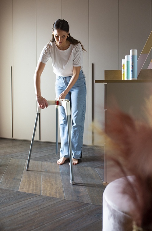 Picioarele sunt prevăzute cu tampoane antiderapante și pot fi demontate. Economisește foarte mult spațiu, perfectă pentru călătorii! Dimensiuni suport deschis (cm): L 67 x Î 74 x A 54,5 Dimensiuni suport închis (cm): L 85 x Î 74 x A 15.