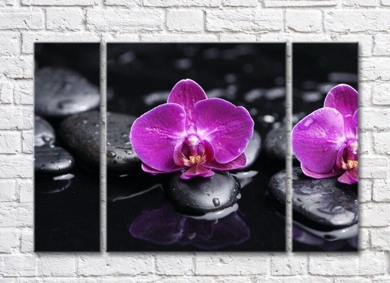 Pictură Gallerix Purple orchid flowers on a black background with stones (500760)