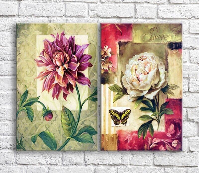 Pictură ArtPoster Chrysanthemums and butterflies on the background of abstraction (3467865)